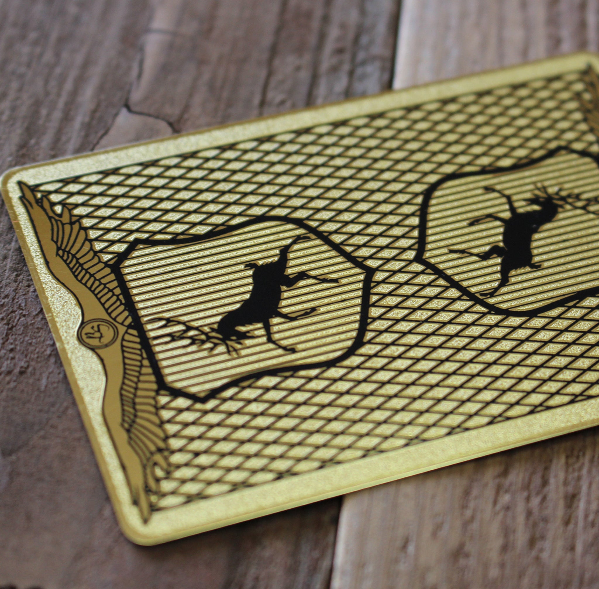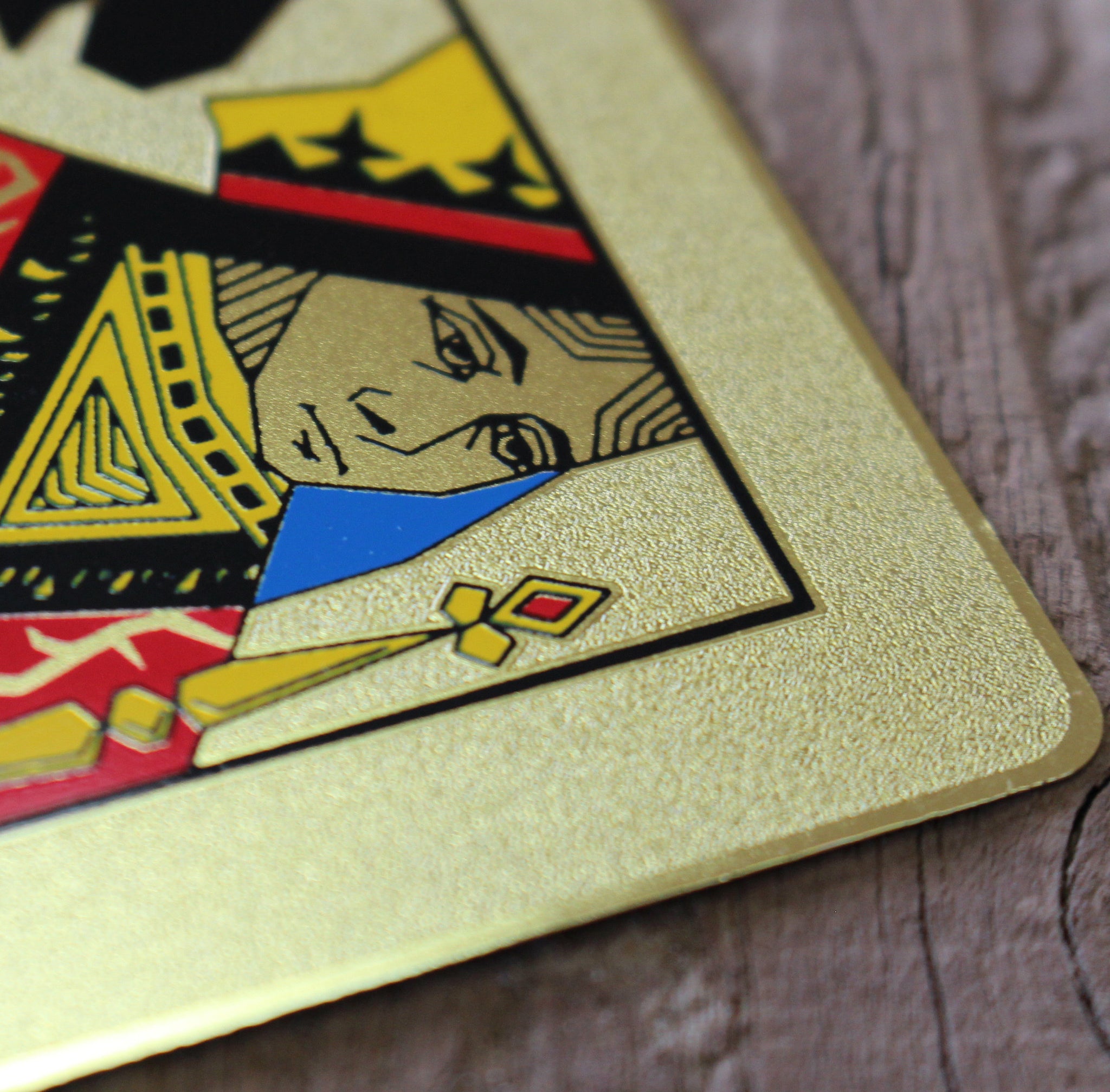 This deck is designed with strong straight lines meant to be ridgid just like metal. The steel is etched with acid to create the art then heat printed with 4 color ink. The cards are slightly flexible but cannot be shuffled in a traditional matter.